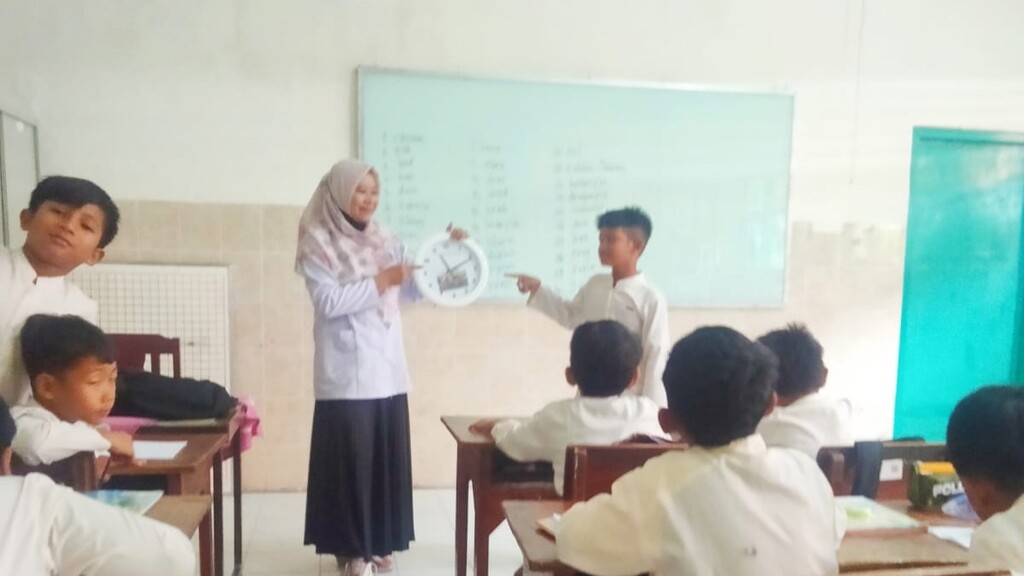 Peserta didik kelas 2 di dampingi Ibu Eka membuat batik shibori bersama di ruangan kelas